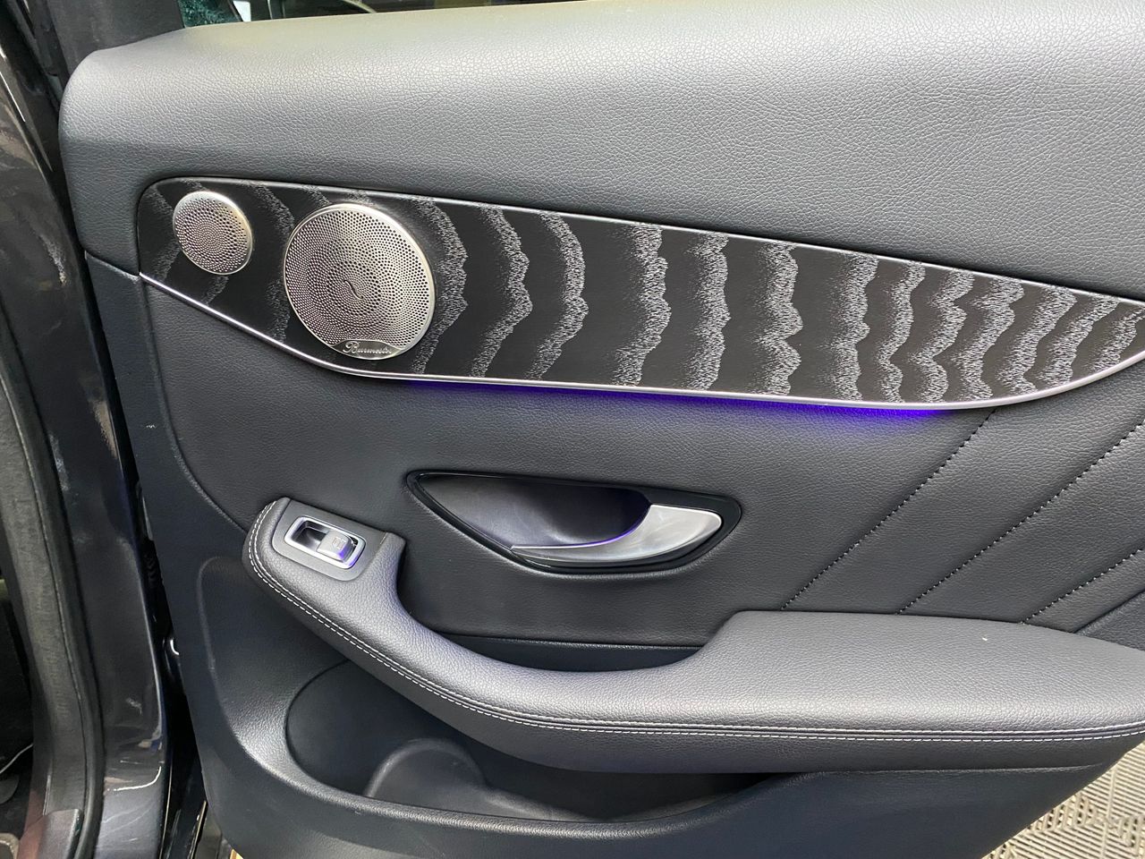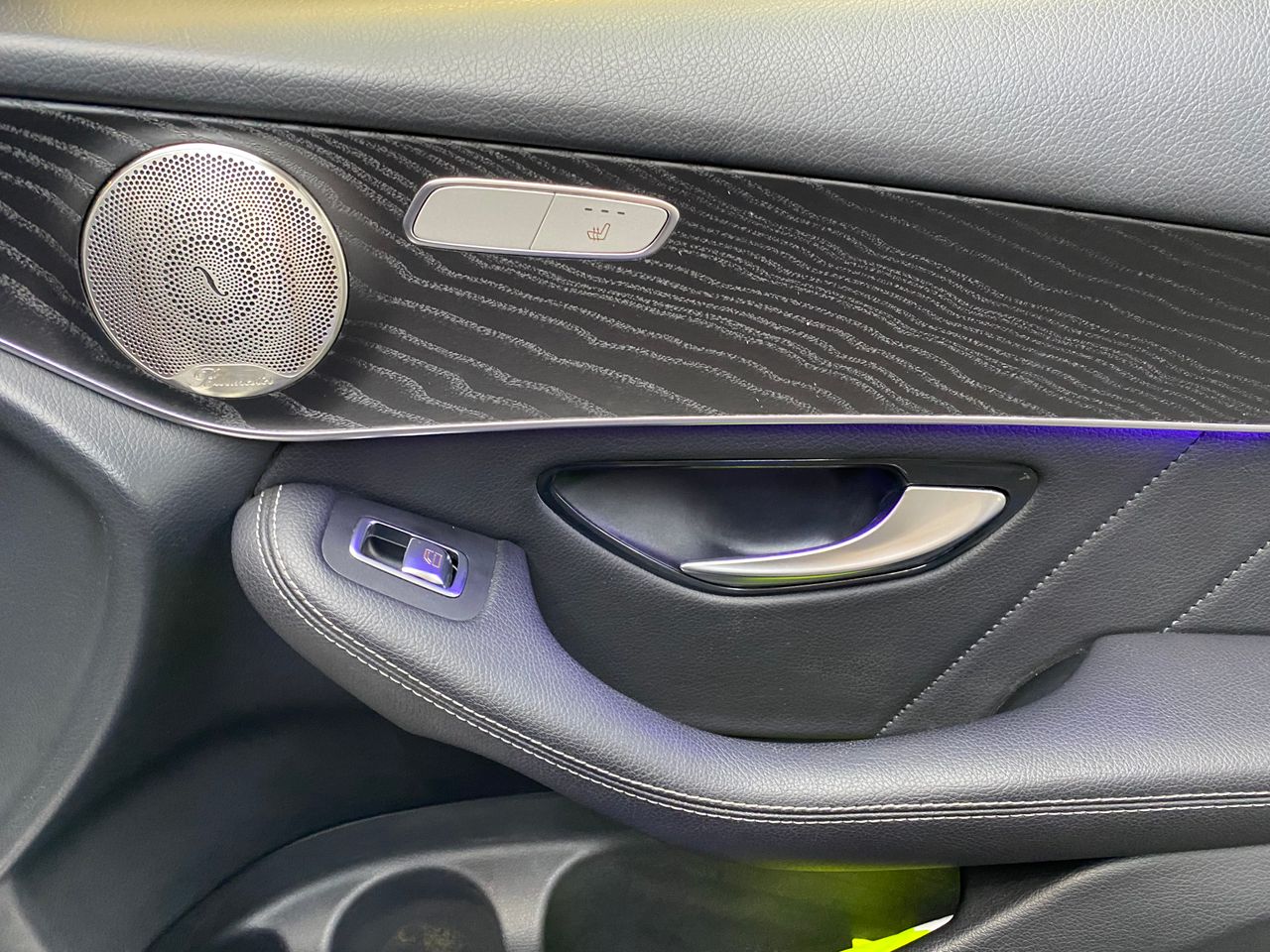 El interior destaca por su acabado AMG Line con tapicería en símil cuero ARTICO/microfibra DINAMICA negro, complementado con elegantes molduras de madera de fresno negro de poros abiertos. Los asientos calefactados y la iluminación ambiental crean una atmósfera confortable y exclusiva.